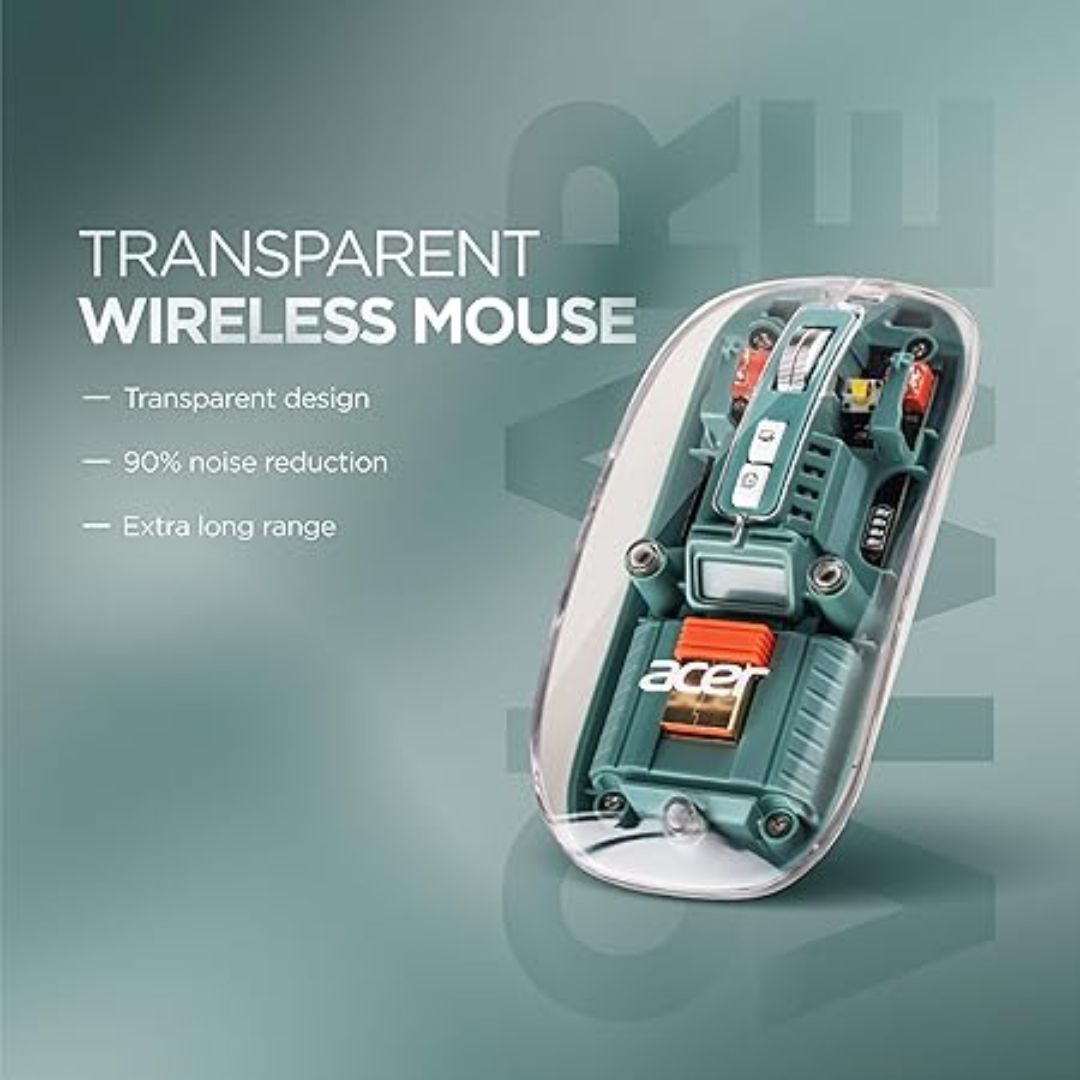 Discover the Acer Clearview Transparent Wireless Mouse – a perfect fusion of futuristic design and smart functionality. With a crystal-clear body, silent click technology, and triple-mode connectivity (Bluetooth 5.1 + 2.4GHz + USB), this mouse is crafted for modern multitaskers. Whether you're navigating spreadsheets, designing on MacOS, or scrolling your phone, this mouse delivers. The 1600 DPI optical sensor ensures smooth and accurate tracking, while the rechargeable USB-C battery keeps you powered on-the-go. Ideal for work, play, or travel – all in style.