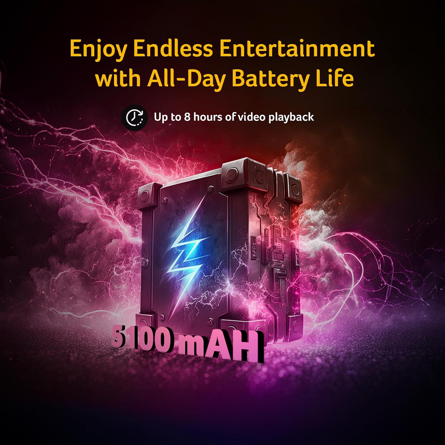 Power up your fun with a 5100 mAh battery. Enjoy up to 8 hours of binge-watching on a single charge.