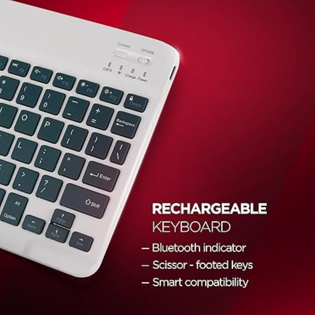 The included Bluetooth mouse offers 3 adjustable DPI levels (up to 1200 DPI) for accurate control, whether you’re working on documents, browsing, or editing. Both devices feature rechargeable batteries, eliminating the hassle of disposable ones.