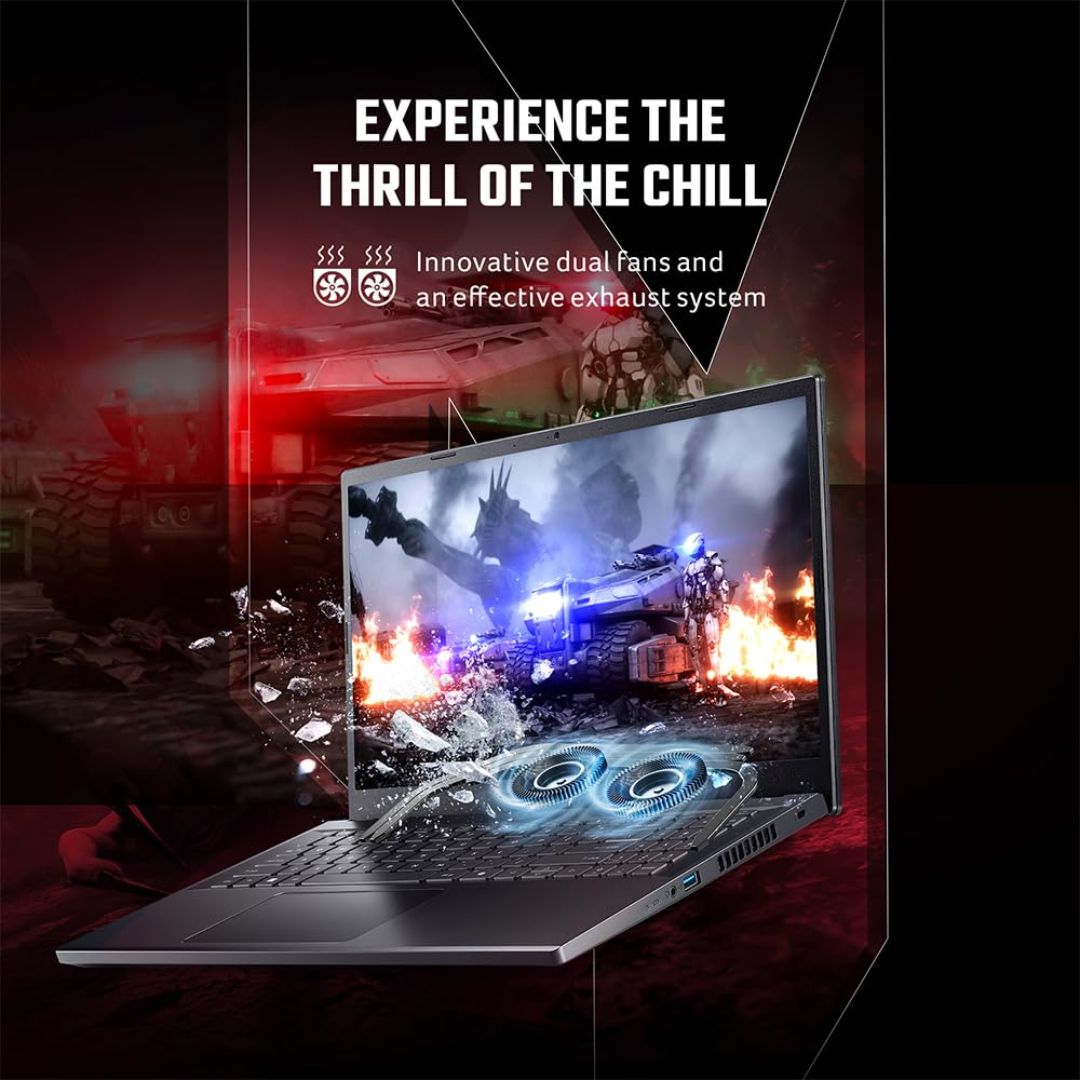 Acer Nitro V 15 (ANV15-41) is built for gamers who demand speed, graphics power, and portability. Equipped with the AMD Ryzen 5 6600H processor and NVIDIA RTX 4050 GPU with 6GB GDDR6 VRAM, it delivers smooth gameplay and realistic visuals. Its 15.6” Full HD IPS display with 165Hz refresh rate ensures fluid motion, making it perfect for fast-paced gaming. With 16GB DDR5 RAM and 512GB NVMe SSD, it provides lightning-fast load times and multitasking efficiency. Designed in Obsidian Black, the Nitro V 15 combines style with raw power, making it an excellent choice for gamers and creators.