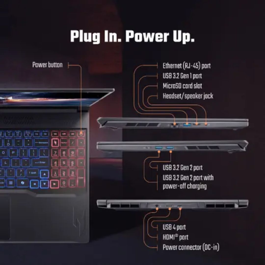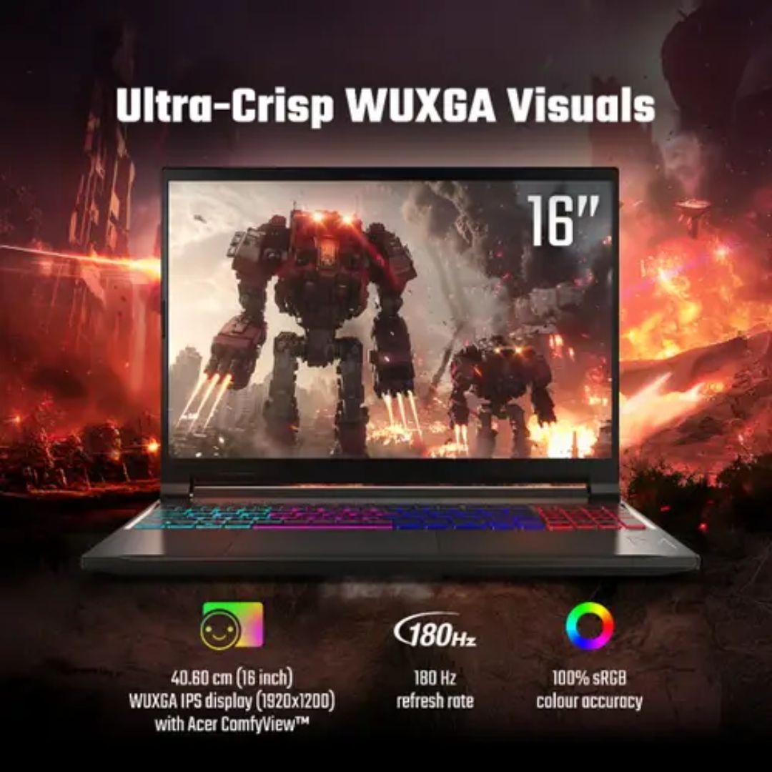 Acer Nitro V 16S Gaming Laptop (ANV16S-71) is engineered for gamers and power users who demand speed, visuals, and reliability. Driven by the Intel Core i5 210H processor and next-generation NVIDIA GeForce RTX 5050 graphics with 8GB GDDR7 memory, this laptop delivers exceptional gaming and creative performance. Its 16- inch WUXGA IPS display with a blazing-fast 180Hz refresh rate ensures ultra-smooth visuals and immersive gameplay. Equipped with 16GB DDR5 RAM and a 512GB SSD, it offers rapid responsiveness and efficient multitasking. The RGB-backlit slim keyboard adds a premium gaming touch, while the sleek Obsidian Black chassis keeps the laptop stylish and portable at just 2.1 kg. Ideal for gaming, streaming, and content creation, the Acer Nitro V 16S is built to perform without compromise.