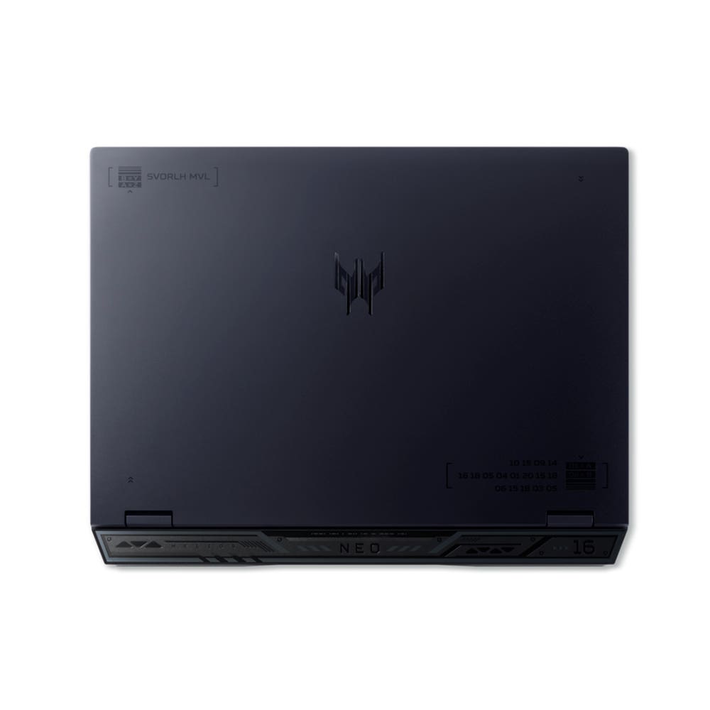 The Predator Helios Neo 16 showcases laseretched encrypted codes on its deep black anodized cover, inviting you to discover, decode, and unravel their secrets.