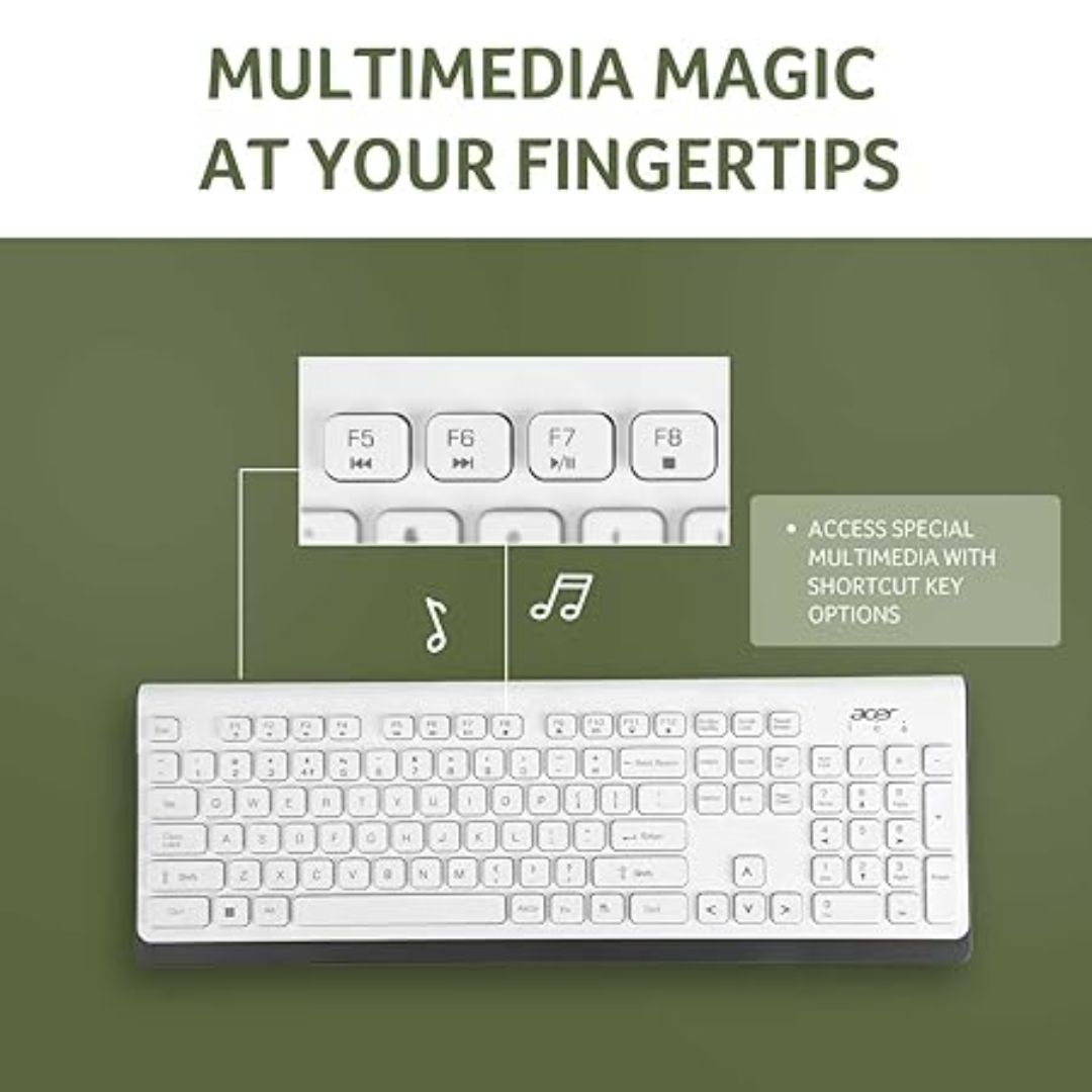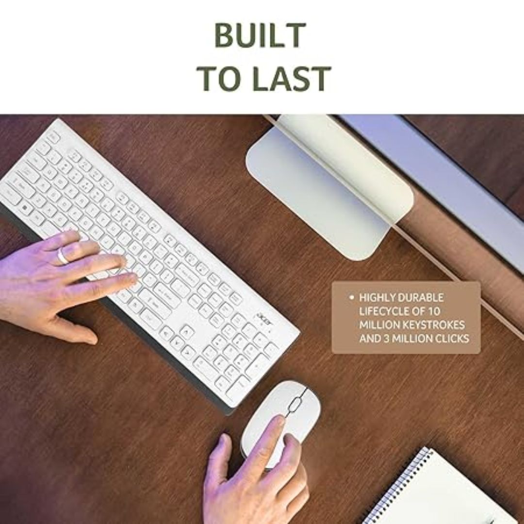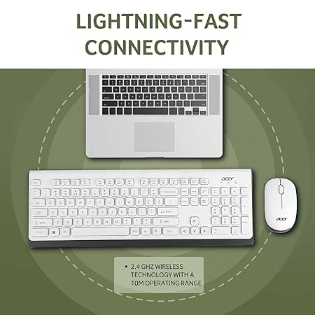 The Acer Wireless Keyboard & Mouse Combo (White/Grey) – ZC.A01SI.0WD is a stylish and durable productivity essential designed for comfort, reliability, and efficiency. Featuring an Indian Rupee (₹) key, it’s tailored for Indian users. The 2.4GHz wireless Nano receiver ensures a stable connection with up to 10m range, while the ergonomic design makes it perfect for both office and home use.