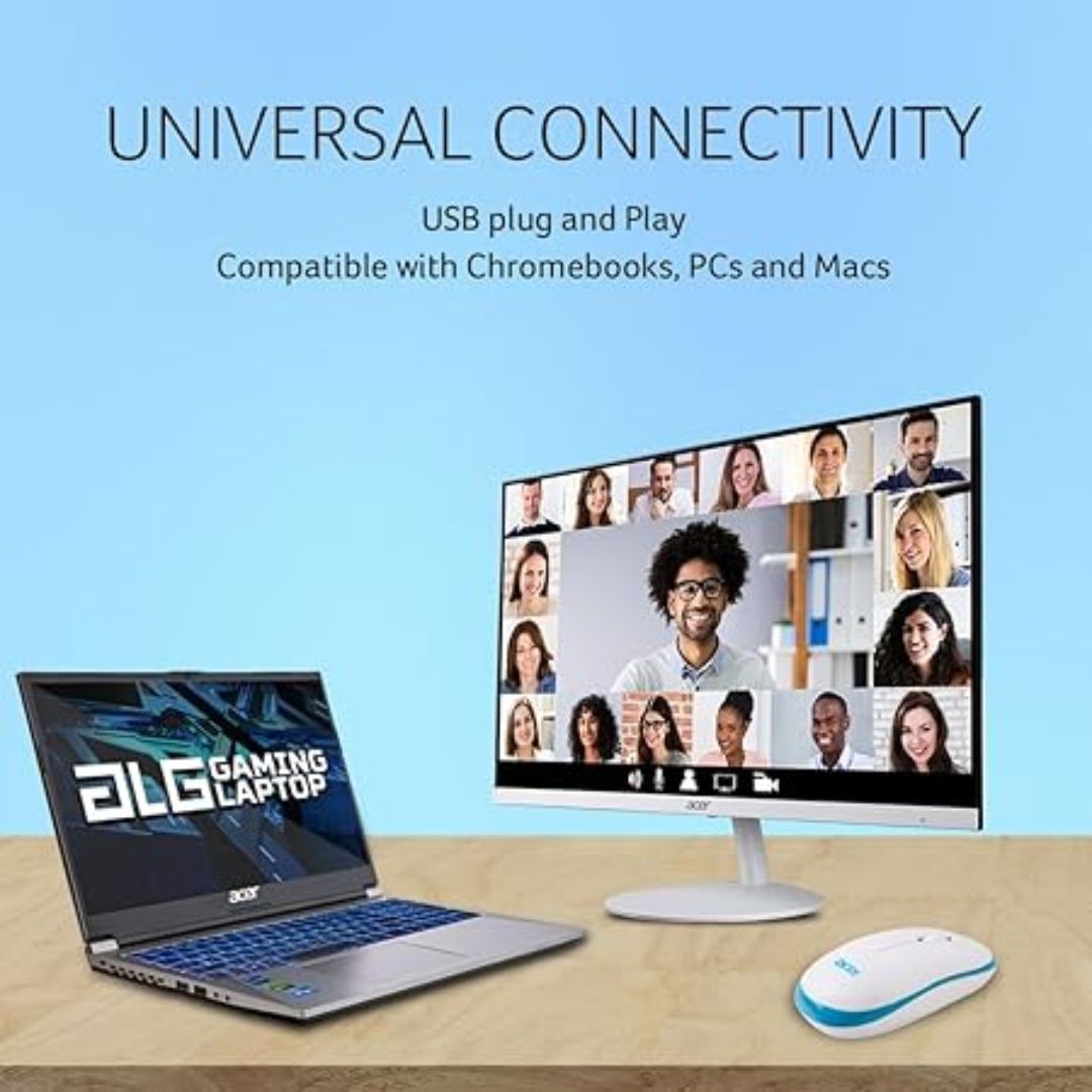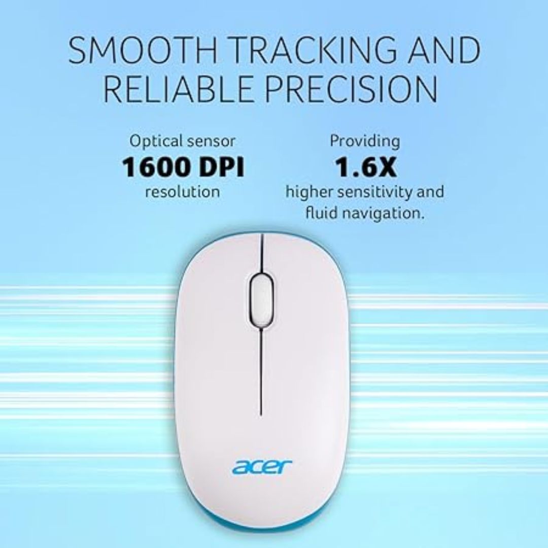 The Acer Wireless Mouse combines style, comfort, and precision in a lightweight and ergonomic design. Equipped with a 1600 DPI optical sensor, it ensures smooth and accurate tracking, perfect for everyday productivity, browsing, and multimedia use.