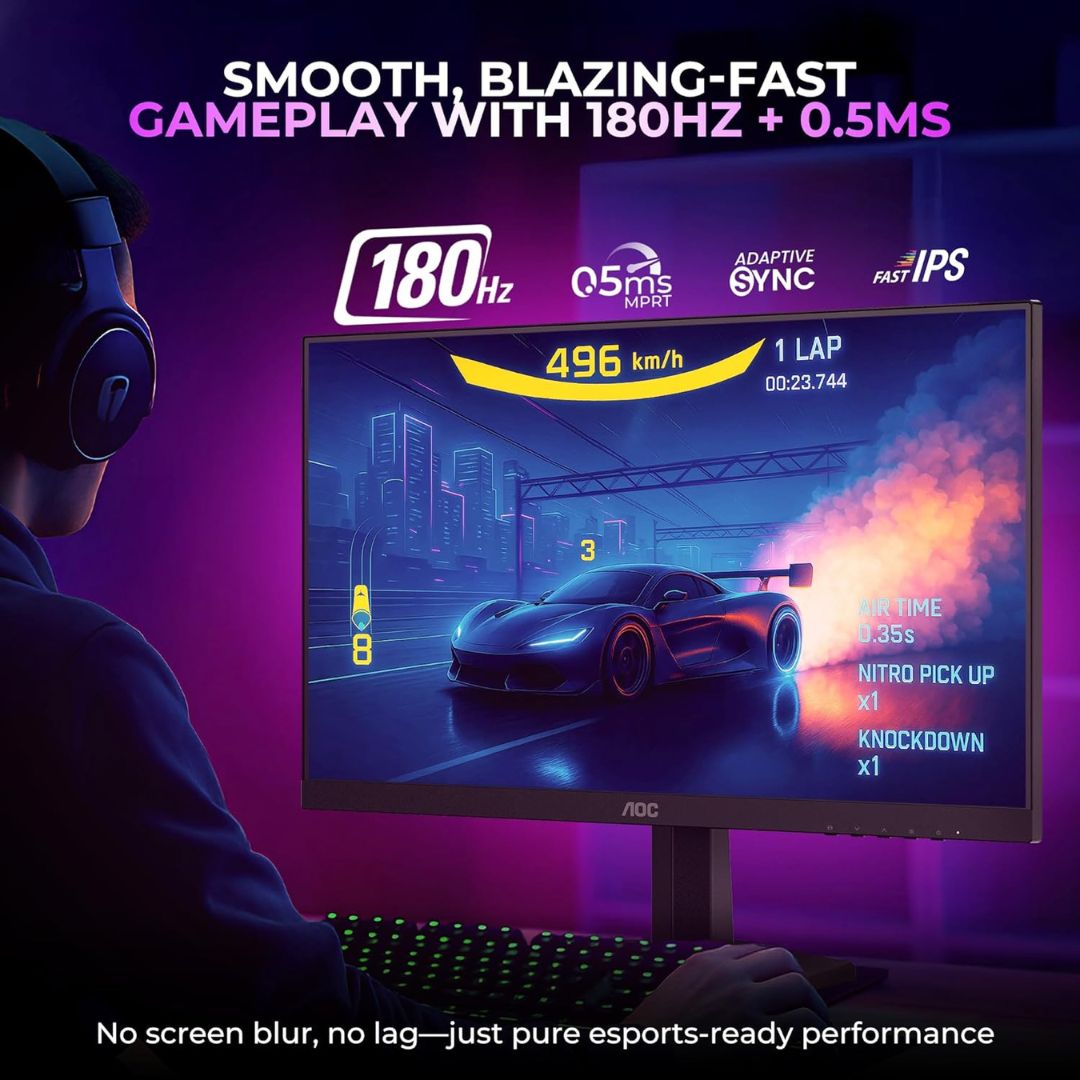 The AOC 24G42E 24-inch Gaming Monitor is built for competitive gamers who demand speed, clarity, and responsiveness. Featuring a Fast IPS panel, it delivers accurate colors and wide viewing angles while maintaining lightning-fast performance.