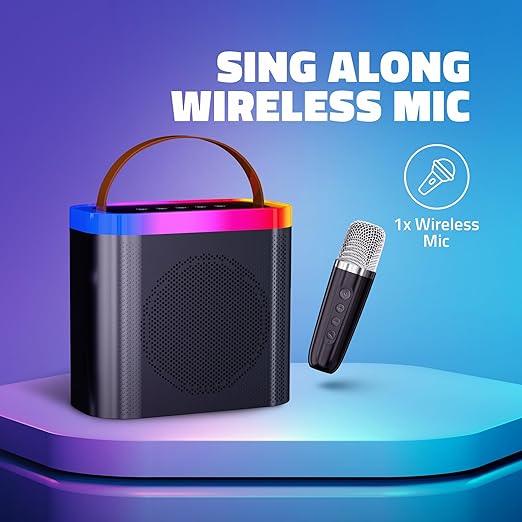 It supports Bluetooth, USB input, AUX, and TF card, plus includes a wireless microphone, making it ideal for announcements, events, and singing. Built with a sleek black design and portable body, it's powerful, reliable, and entertainment-ready.