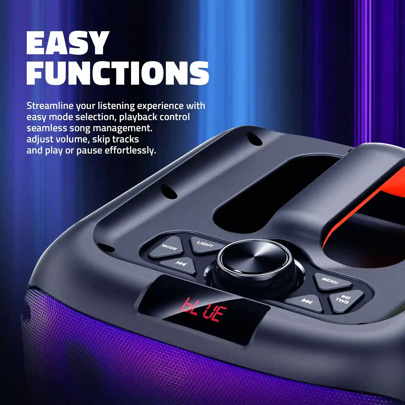 Its rugged and portable design makes the Artis SoundPro 200 easy to move and place anywhere — from living rooms to outdoor gatherings. The built-in party lights add to the visual appeal, creating a dynamic atmosphere that complements the sound.