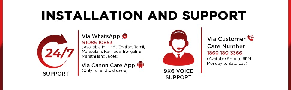 | Manufacturer | Canon Inc., Avail free installation on this model from Canon : brand customer care on: [1800 180 3366 ][1800 208 3366] Timings: 8:30am-5:30pm post receipt of product to book and schedule free installation and support |