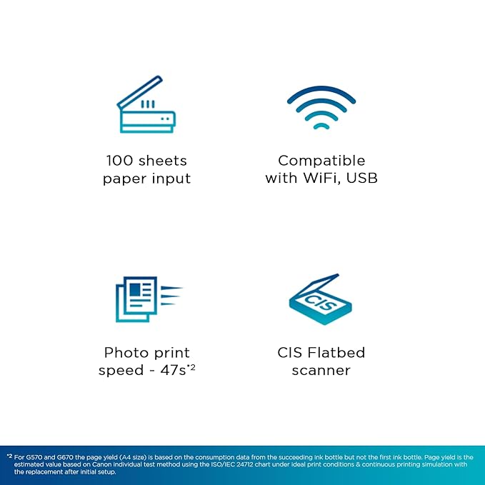 Canon PIXMA G670, MegaTank printer, 6-colour printer, high-volume photo printer, replaceable print heads, maintenance cartridge, all-in-one printer, print scan copy, photo printer for home, studio printer