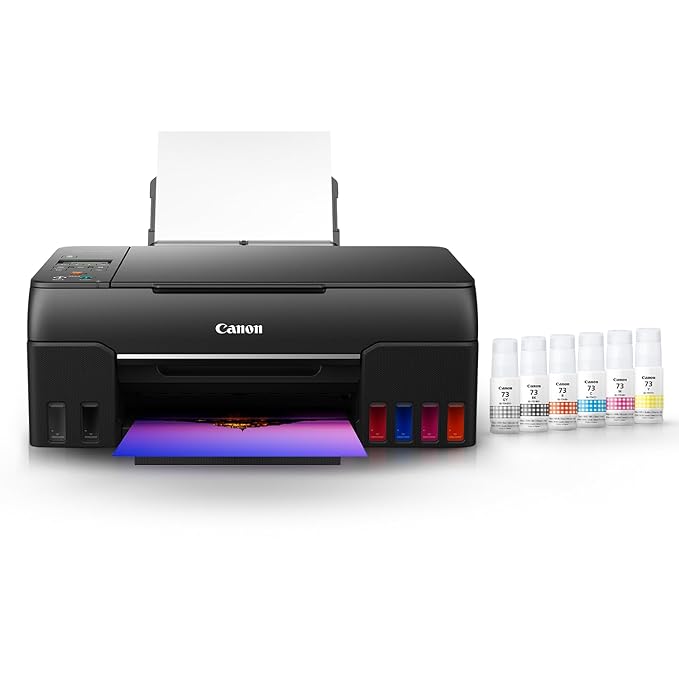 | Included Components | Printer, Power cord, USB cable, User Manual, Installation CD, 1 set of GI-73 (Black,Grey,Cyan,Magenta,Yellow,Red) ink bottles |