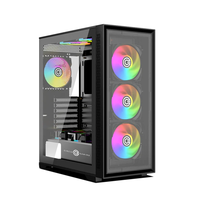 The Circle Furious Glass 240 ARGB Gaming Cabinet is designed for gamers and PC enthusiasts who demand high style and high performance. Featuring dual tempered glass panels, pre-installed ARGB fans, and a USB Type-C 2.0 port, it delivers a perfect balance of airflow, design, and build space. With full ATX motherboard support, it's ideal for powerful gaming rigs and future-ready custom builds. Its high-airflow mesh design ensures cool operation, while vibrant ARGB illumination adds flair to any setup.
