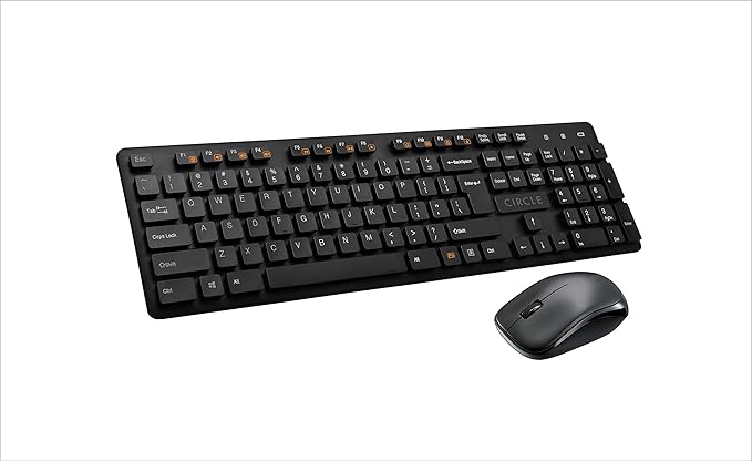 Circle Rover A7 Wireless Combo, featuring a stylish black wireless keyboard and a Silent Pro Mouse. Designed with a unique slim profile and spill-resistant build, this keyboard is ideal for both workspaces and home use. The KAILH Silent Switches in the mouse ensure noiseless operation, making it perfect for quiet environments like offices, libraries, or late-night work sessions.