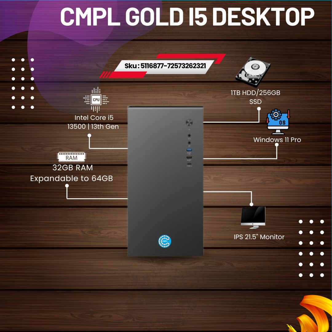 The system features the Intel Q670 chipset for optimal performance and compatibility. Paired with a 21.5" IPS LED Backlit monitor boasting a crisp 1920x1080 resolution, this setup is perfect for both work and entertainment. The tower form factor, ranging from 13.1 to 26 liters, ensures ample space for all components while maintaining a sleek design.