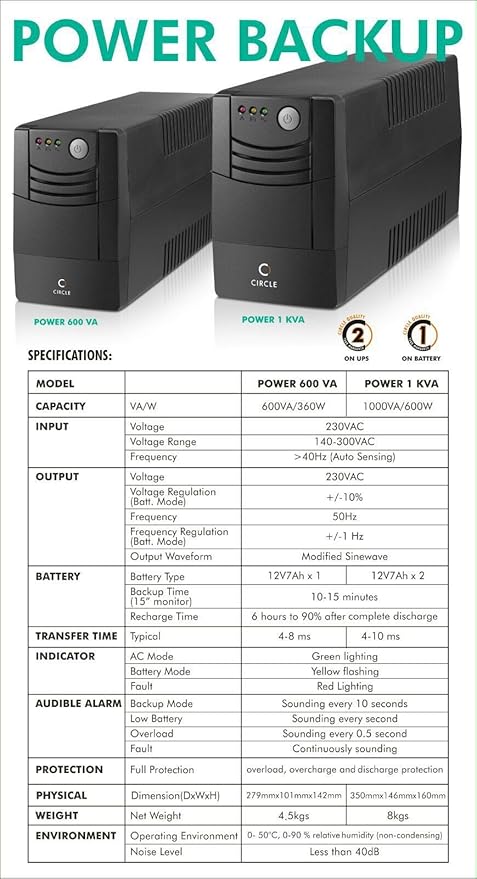 Whether you're working from home, managing network security systems, or simply need backup for your entertainment setup, the Circle 1KVA UPS offers uninterrupted power, device safety, and peace of mind in every power cut scenario.