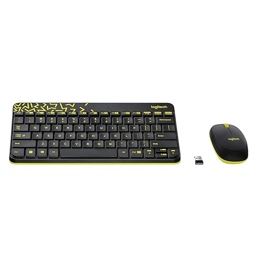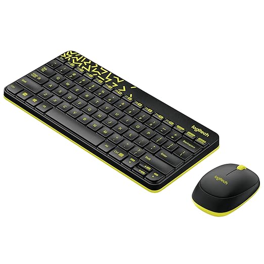 Logitech MK240 Nano wireless combo offers a compact design, long battery life, spill-resistant keys, and a bold black and yellow color scheme (perfect for PCs and Macs).