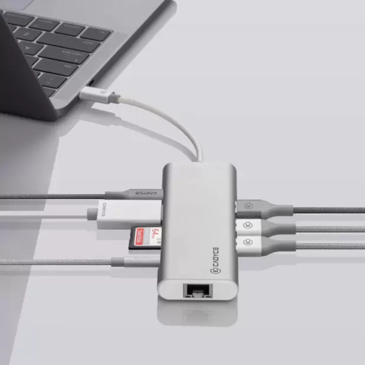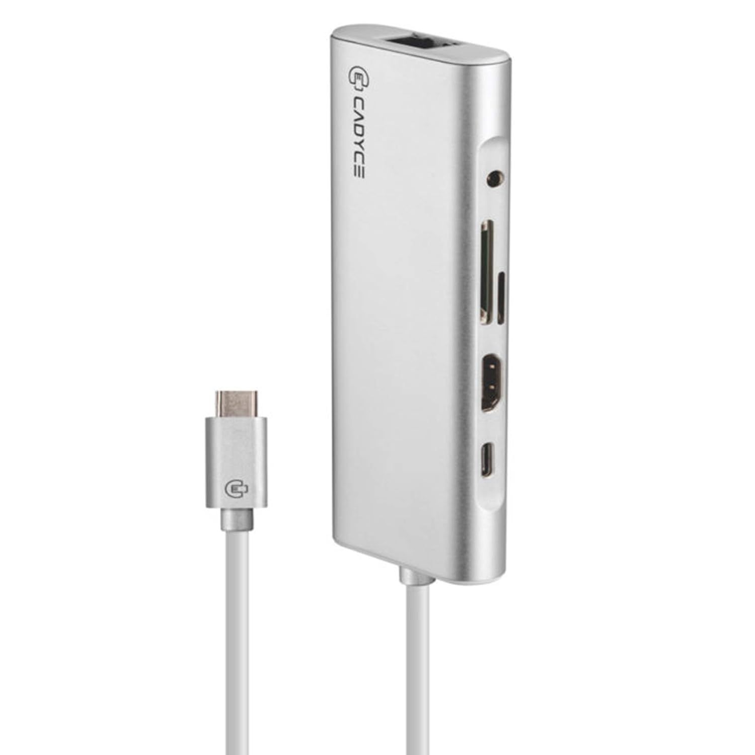Cadyce CA-CXTDS Type-C Travelling Dock with Audio is a premium 8-in-1 USB-C hub built for professionals who need full desktop connectivity anywhere. It expands your USB-C / Thunderbolt 3 laptop with HDMI, Ethernet, SD and microSD card slots, three USB 3.0 ports, 3.5 mm audio jack, and USB-C PD charging up to 100 W.
