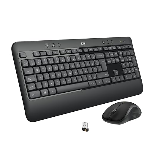 The Logitech MK540 Advanced Wireless Keyboard and Mouse Combo is a reliable and comfortable set designed for productivity. The full-size keyboard comes with a familiar layout, palm rest, quiet keys, and convenient multimedia hotkeys, making typing smooth and efficient. It is spill-resistant, durable, and offers up to 3 years of battery life. The included wireless mouse features an ambidextrous design with soft rubber grips, smooth optical tracking, and an 18-month battery life. Both devices connect through a single 2.4 GHz Logitech Unifying USB receiver, providing a stable wireless range of up to 10 meters. Perfect for Windows PCs and laptops, this combo delivers long-lasting comfort, reliable performance, and hassle-free setup.