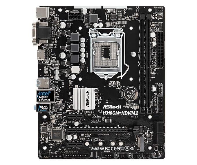 ►Discover reliable performance and compatibility with the ASRock H310CM-HDV/M.2 MicroATX motherboard. Designed to support both 8th and 9th generation Intel Core processors on the LGA1151 socket, it ensures seamless integration with your computing needs. This motherboard features DDR4 2666 MHz memory support for efficient multitasking and gaming. With a PCIe 3.0 x16 slot and two PCIe 2.0 x1 slots, it offers expansion options for additional components. Enjoy versatile connectivity options with HDMI, DVI-D, and D-Sub ports for multiple display setups. Ideal for building a cost-effective yet capable system for home or office use.
