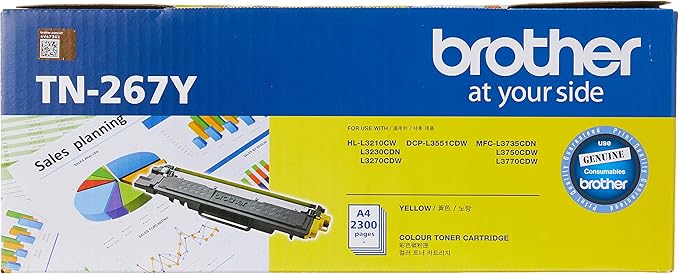 The Original Brother TN-267Y Toner Cartridge helps you get the most from your Brother printer, bringing you high-quality results on all your printing jobs. It has an estimated page yield of 2300 pages.