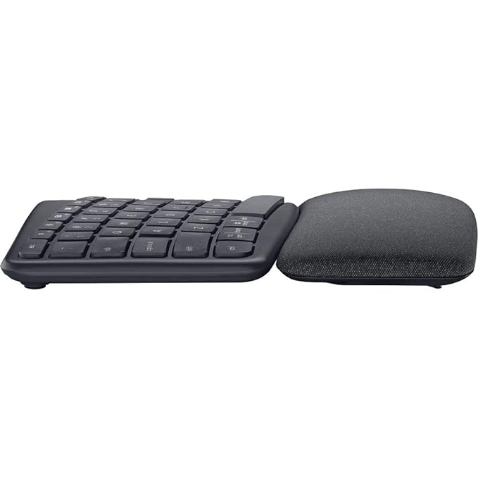 Type more naturally with ERGO K860 - an advanced ergonomic keyboard that promotes a more relaxed typing posture – reducing wrist bending by 25% and offering 54% more wrist support. The curved, split keyframe reduces muscle strain on your wrists and forearms. And the pillowed wrist rest offers comfort and the optimal ergonomic position. The adjustable palm lift feature keeps your wrists in a natural posture, whether you're seated or standing. You’ll confidently type on Perfect Stroke keys—crafted for precision and fluidity. And an integrated numpad, multi-device capabilities, and two-year battery life ensure that you won’t compromise performance for ergonomics.