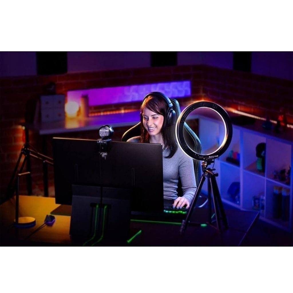 Illuminate your stream or recording setup with the Razer 12” USB LED Ring Light (Model: RZ19-03660100-R3M1) — designed for creators who demand professional-grade lighting. With 10 adjustable brightness levels and a color temperature range from 3000K to 6500K, you can create the perfect ambiance for any environment. Powered by USB, it’s easy to use with your PC, laptop, or mobile setup. The included tripod stand, smartphone holder, and ball head adapter offer versatile mounting options, whether you’re streaming, recording videos, or joining virtual meetings. Built with Razer’s trademark durability and style, this ring light ensures you always look your best — on camera and off.