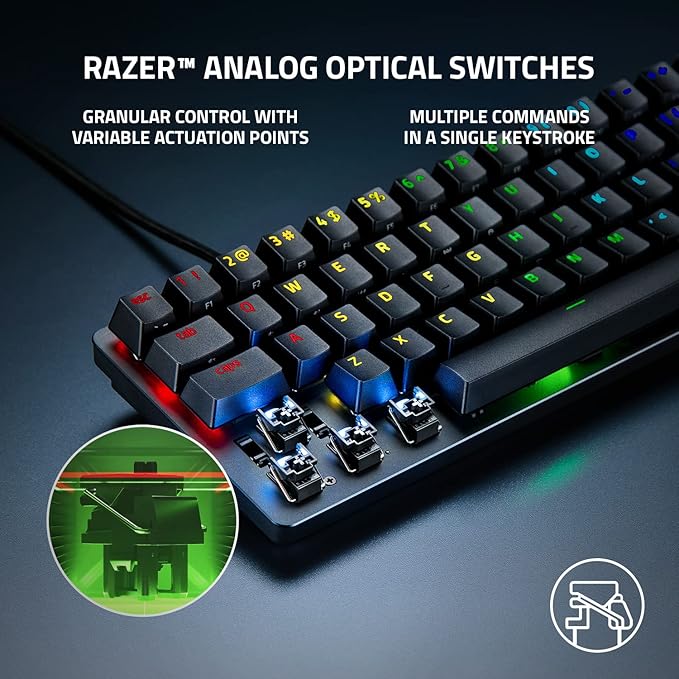 The Razer Huntsman Mini Analog (RZ03-04340100-R3M1) is designed for gamers who demand precision, performance, and a minimal footprint. Featuring Razer’s innovative Analog Optical Switches, this 60% keyboard supports adjustable actuation points, enabling keystroke behavior tailored to your playing or typing style. Whether you want ultra-fast actuation for gaming or deeper travel for typing comfort, you’re covered.