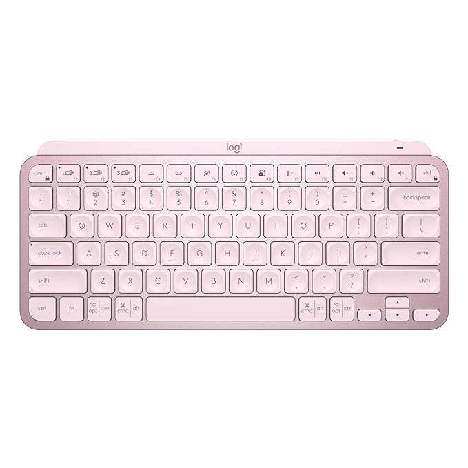 Logitech MX Keys Mini Minimalist Wireless Illuminated Keyboard, Compact, Bluetooth, Backlit, USB-C, Compatible with Apple macOS, iOS, Windows, Linux, Android, Metal Build-Rose