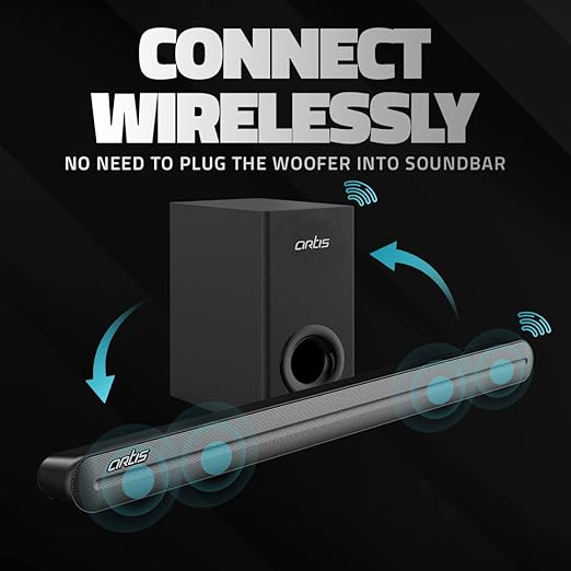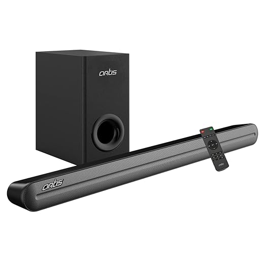 The Artis X9 Sound Bar combines sleek aesthetics with robust audio performance, featuring a compact and stylish matte black design that fits seamlessly into any setting. It houses four inbuilt speakers and a dedicated woofer to deliver a rich sound experience with crisp highs and deep bass, covering a broad frequency range.
