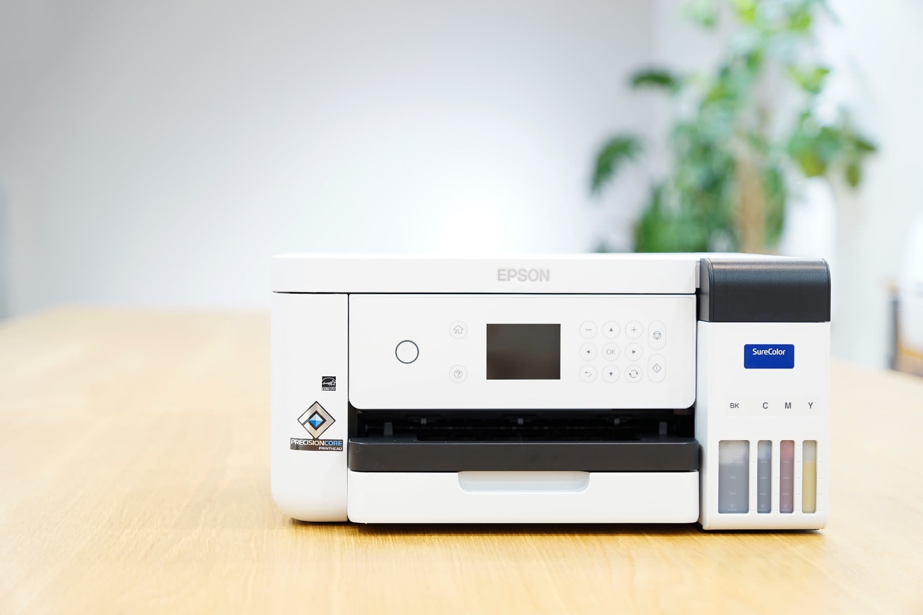 The Epson SureColor SC-F130 is a compact and efficient A4 dye-sublimation printer, specifically engineered for high-quality printing on textiles and promotional merchandise. Designed for businesses, creators, and home users, it offers a reliable and cost-effective solution for printing on polyester fabrics and coated items such as mugs, mousepads, t-shirts, and keychains.