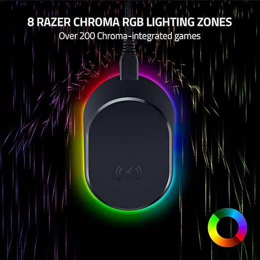 Upgrade your wireless gaming setup with the Razer Mouse Dock Pro (Model: RZ81-01990100-B3M1) — a high-performance docking solution engineered for speed, precision, and convenience. Featuring Magnetic Wireless Charging and the included Razer Wireless Charging Puck, it enables fast, reliable charging for compatible Razer mice. With HyperPolling 8K Hz support, the dock delivers next-level responsiveness, ensuring ultra-smooth gameplay. The Chroma RGB underglow lighting adds vibrant, customizable flair to your desktop, while the weighted anti-slip base provides superior stability. Designed to match Razer’s premium wireless mice, the Mouse Dock Pro is the perfect balance of function and aesthetics for serious gamers.