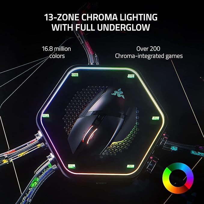 The Razer Basilisk V3 Pro is a premium wireless gaming mouse engineered for uncompromising performance. Equipped with a 30,000 DPI Focus Pro sensor, it offers superb tracking precision. The mouse supports wireless dual-mode connectivity — high-performance HyperSpeed 2.4 GHz for competitive gaming and Bluetooth for multi-device flexibility — while still offering wired USB-C connectivity. The ergonomic right-hand design includes a sculpted thumb rest and a multi-function tilt scroll wheel that seamlessly transitions between tactile and free-spin modes. With Gen-3 optical switches in the left and right buttons, you get faster actuation, better responsiveness, and long term durability. Add in full Razer Chroma RGB lighting, cloud/on-board memory for profiles, and optional wireless charging support — and you have a high-end mouse that serves serious gamers looking for wireless freedom without compromise.