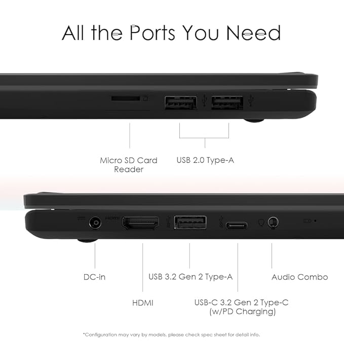 It includes USB Type-C, USB Type-A, HDMI, and a headphone/microphone combo jack.