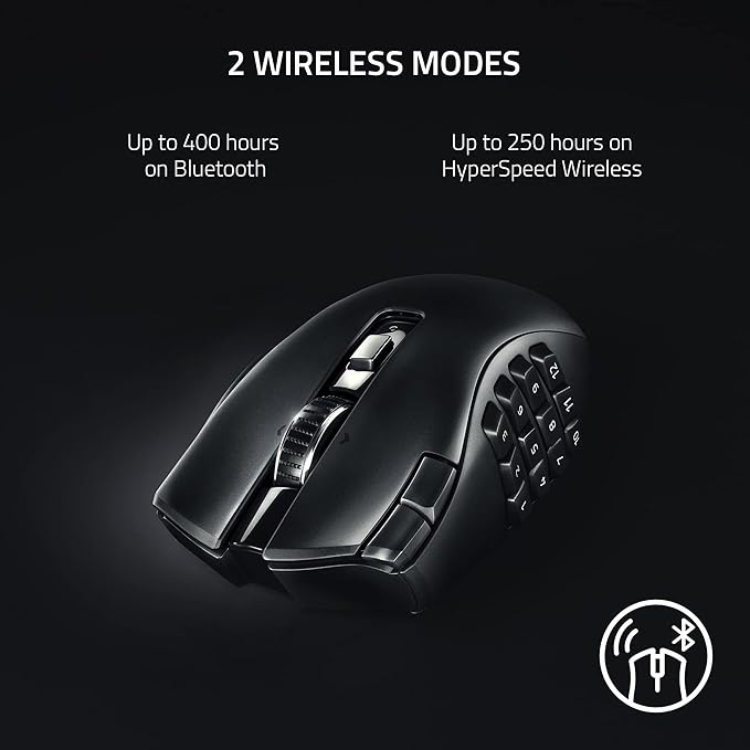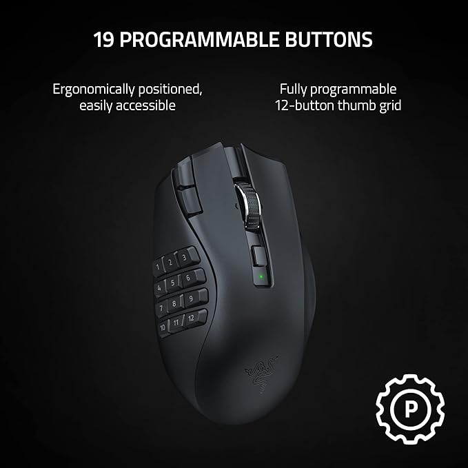 Razer Naga V2 HyperSpeed Wireless MMO Gaming Mouse is designed for ultimate precision and customizable control in MMO gaming. With 19 programmable buttons, it offers extensive functionality for complex in-game actions, macros, and commands, giving you the edge during intense gameplay. The mouse features HyperScroll Technology, allowing for smooth, rapid scrolling, perfect for both high-speed and precise navigation.