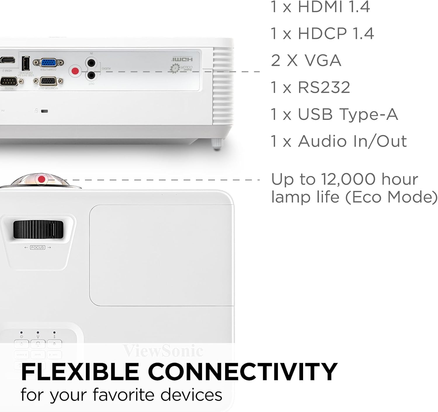 Featuring 4,000 ANSI lumens of stunning brightness, this powerful business and education projector creates crystal clear images up to 300”. And with a 0.616 short throw ratio, this projector is capable of displaying shadow-free 100” images from just 4.3 feet away.