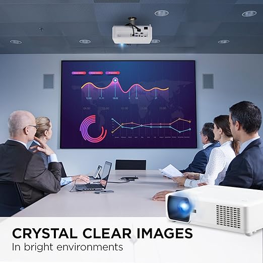 The ViewSonic PA700W is a high-brightness WXGA projector ideal for business and educational environments, featuring a robust output of 4,500 ANSI lumens and a resolution of 1280x800 pixels. This versatile projector can project stunning images on screens up to 300 inches, ensuring clear visuals even in well-lit spaces. It offers easy setup with a 1.1x optical zoom and ±40-degree vertical keystone correction, alongside flexible connectivity options including dual HDMI, USB, and VGA ports. The SuperEco mode extends the lamp life up to 12,000 hours, while ViewSonic's SuperColor™ technology enhances color vibrancy for captivating presentations. Additionally, the projector supports software updates via USB, making maintenance simple and convenient. With a lamp-free design that minimizes upkeep and reduces total cost of ownership, the PA700W is an excellent choice for impactful and engaging presentations.