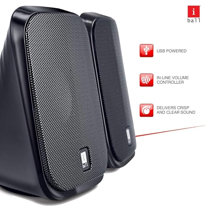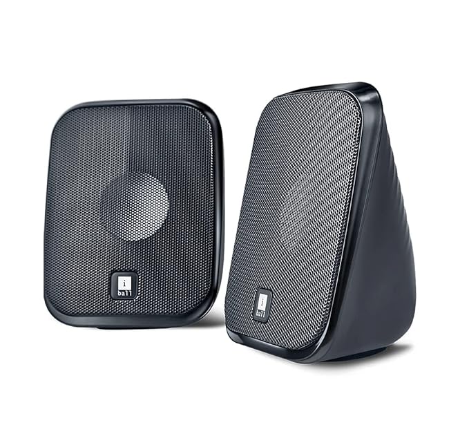 iBall Decor 9+ Speaker: This USB-powered 2.0 multimedia speaker system is designed for optimal audio performance and portability. With a sleek black design and a metallic front grill, it not only enhances your audio experience but also adds a modern touch to your workspace or home. It connects easily to your laptop or any power source via USB, while the 3.5mm auxiliary input allows you to hook up to various music sources.
