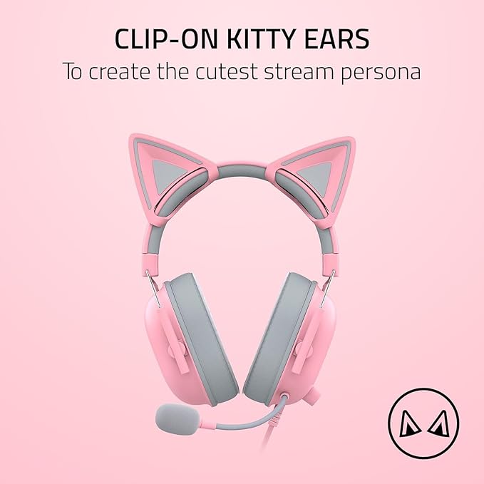 Razer Kitty Ears V2, a fun and customizable accessory for your headset. These clip-on kitty ears are designed to fit most headsets with a universal attachment system and adjustable straps, allowing you to personalize your gear effortlessly.