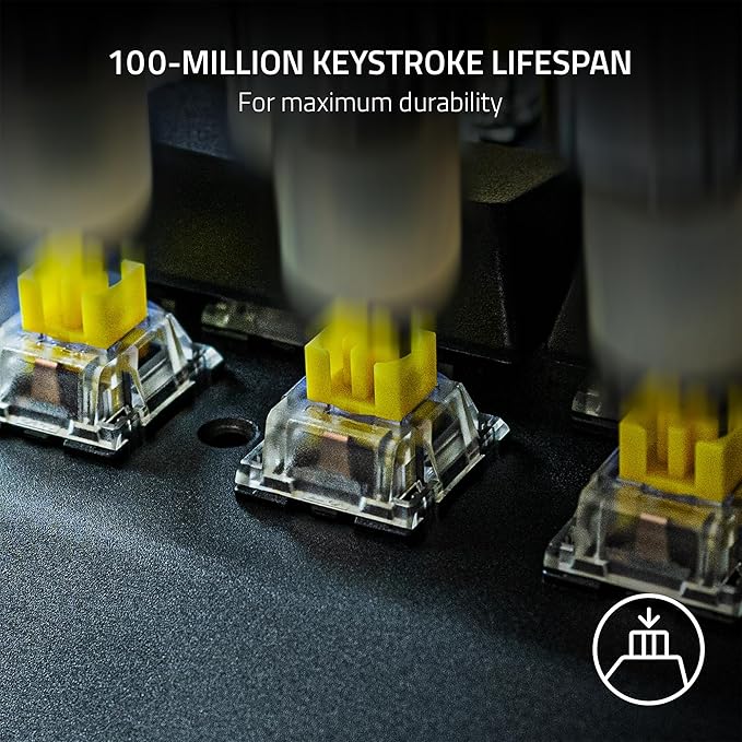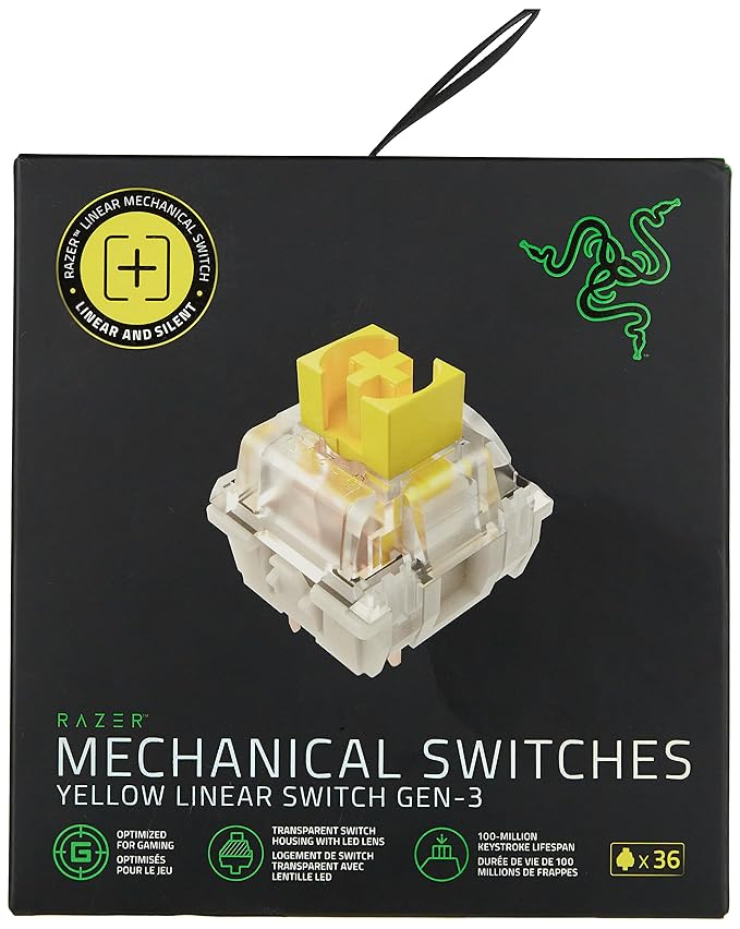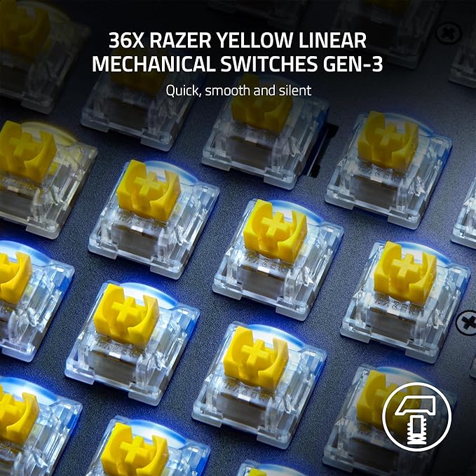 Razer Yellow Linear Mechanical Switches feature built-in sound dampeners—allowing you to game at peak performance with unmatched focus and silence.