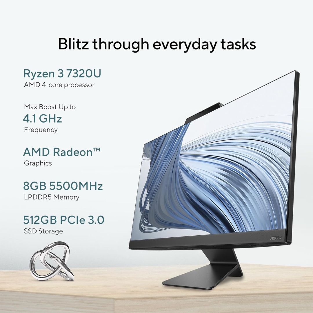 The ASUS AiO M3402WFA Series redefines the modern desktop experience with its elegant, space-saving all-in-one design. Featuring a stunning 23. 8-inch Full HD display and powered by the efficient AMD Ryzen 3 7320U processor,
