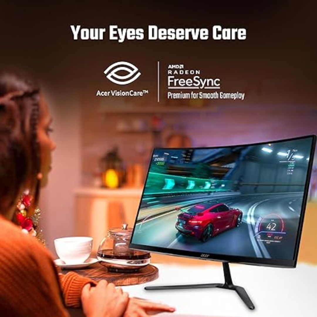 The Acer (ED270R S3, UM.HE0SI.301) 27″ Curved Gaming Monitor is built for gamers who demand immersive visuals and ultra-smooth performance. Its 1500R curved Full HD display enhances depth and viewing comfort, while the 180Hz refresh rate and 1ms VRB response time ensure fluid and responsive gameplay.