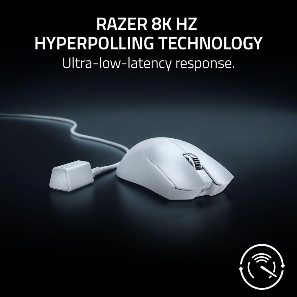 The Razer Viper V3 Pro Wireless Esports Gaming Mouse (RZ01-05120200-R3A1) is engineered for elite FPS players who demand extreme speed, precision, and reliability. Its 54 g ultra-lightweight build gives esports athletes the agility they need for split-second flicks and competitive responsiveness. Equipped with a powerful 35K DPI optical sensor and Gen-3 optical switches, the Viper V3 Pro ensures flawless tracking and crisp, lightning-fast clicks. With support for 8,000 Hz polling, it delivers near-zero latency that meets the standards of top-tier professionals. The mouse features 8 programmable buttons, a symmetrical shape for optimal control, and an impressive 95-hour battery life for long tournament or practice sessions. Finished in a sleek white design, it’s the perfect performance-focused mouse for serious competitive gamers.