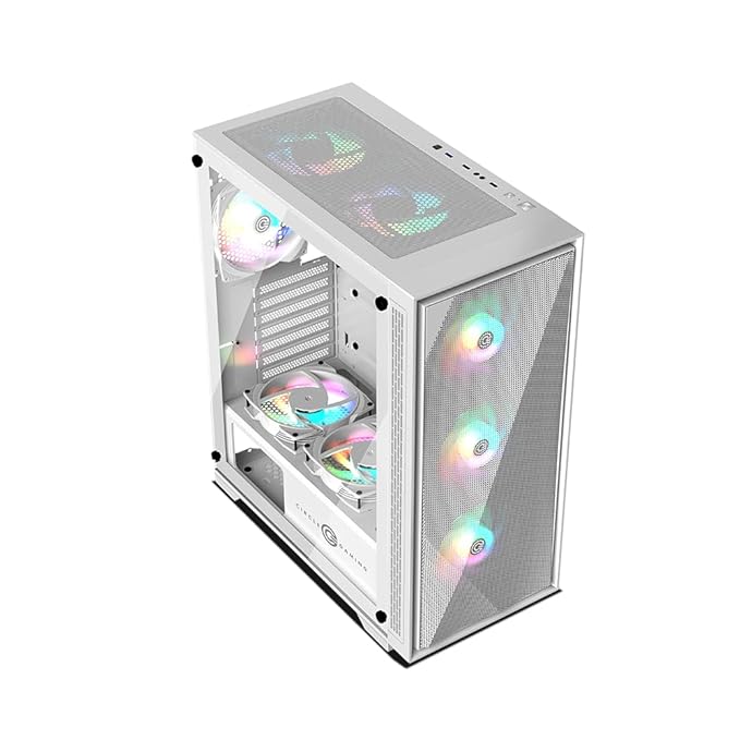 Circle Furious Mesh White 360 ARGB Mid-Tower Gaming Case is designed for gamers and PC enthusiasts who demand style, performance, and superior cooling. Featuring a high-airflow mesh front panel, this case ensures optimal ventilation for high-performance gaming rigs. The pre-installed 4 x 120mm ARGB fans (three in the front and one at the rear) deliver excellent airflow while adding vibrant lighting effects that can be customized.
