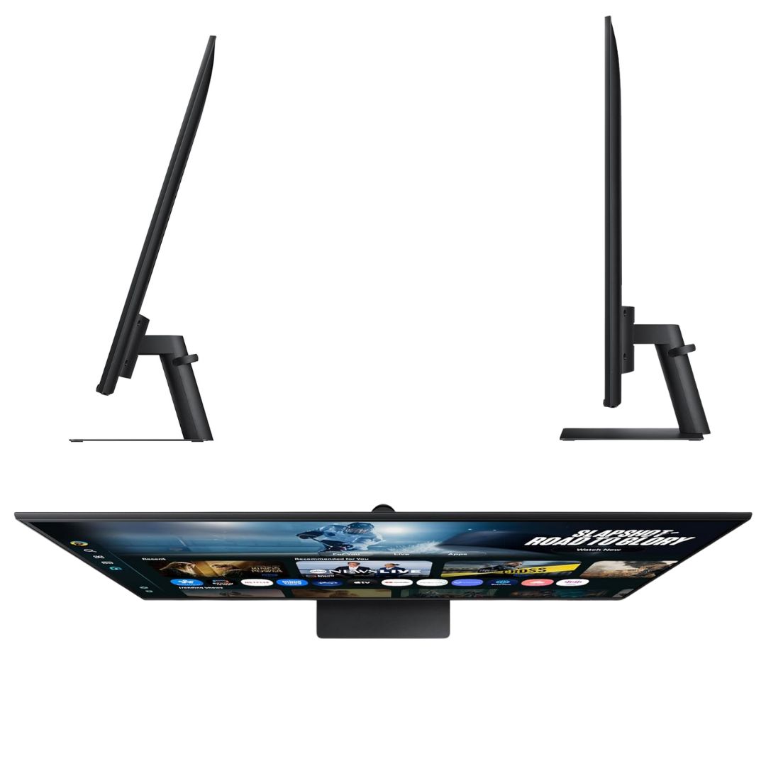 Equipped with Wi-Fi, Bluetooth, built-in speakers, and an eco-friendly Solar Remote, the Samsung M7 Smart Monitor delivers versatility, convenience, and modern design in a sleek black finish, perfect for home offices and smart living spaces.
