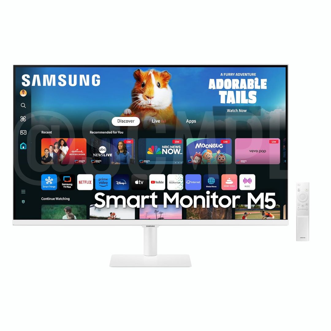 Equipped with built-in speakers, Wi-Fi, and Bluetooth, the monitor offers a clutter-free setup. The bezel-less white design adds elegance to any space, making the Samsung M5 Smart Monitor an ideal choice for home offices and entertainment rooms.