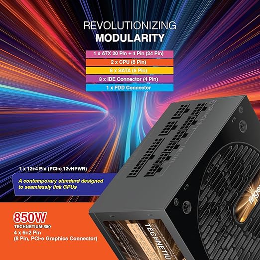 Immerse yourself in the unmatched power and reliability of FINGERS TechneTium Series Modular SMPS Power Supplies. More than just a power supply, it's your gateway to seamless multitasking and steadfast operation. With tailored power options of 650 Watts and 850 Watts, it ensures peak performance for your system configuration. Experience limitless possibilities with unmatched power and versatility.