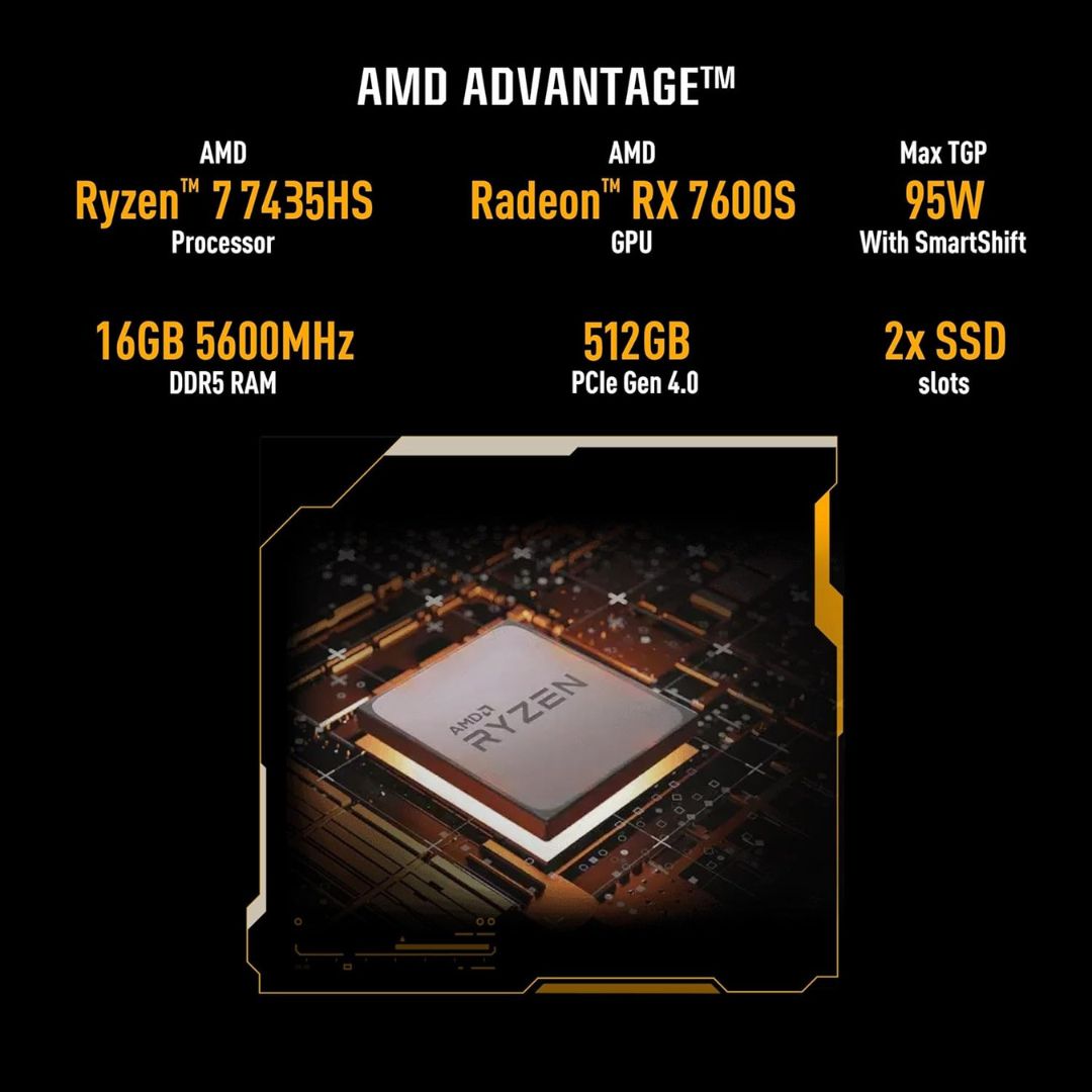 The ASUS TUF Gaming A16 Advantage Edition is built for gamers who demand solid performance and uncompromising reliability. Featuring the AMD Ryzen 7 7435HS processor and AMD Radeon RX 7600S GPU, this laptop delivers an all-AMD gaming experience that’s powerful, efficient, and immersive.