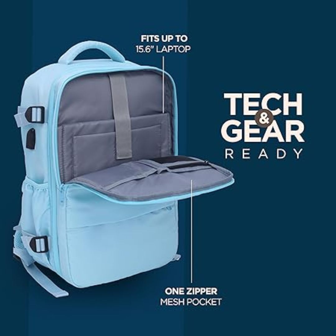 With 2 main compartments for laptops and essentials, along with 2 front zipper pockets for accessories, this backpack ensures maximum organization. The expandable design provides extra storage when needed, while the USB charging port keeps your devices powered up on the go.