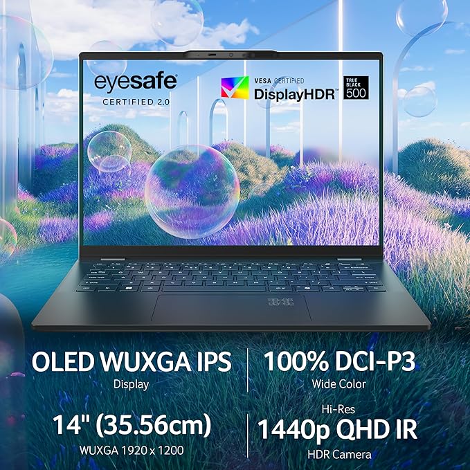 Its 14-inch WUXGA OLED display delivers breathtaking visuals, with 100% Adobe & DCI-P3 coverage, making it a dream for content creators and visual perfectionists. The inclusion of Intel Arc graphics boosts GPU-based rendering and creative tasks.