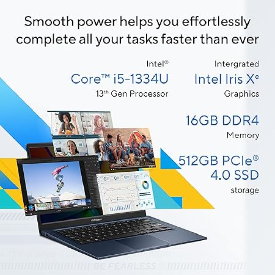 The ASUS Vivobook 14 (X1404VA-NK790WS) is a stylish thin & light laptop designed for professionals, students, and multitaskers. Powered by the 13th Gen Intel Core i5-1334U processor with Intel Iris Xᵉ graphics, it delivers excellent performance for productivity, entertainment, and light creative work.