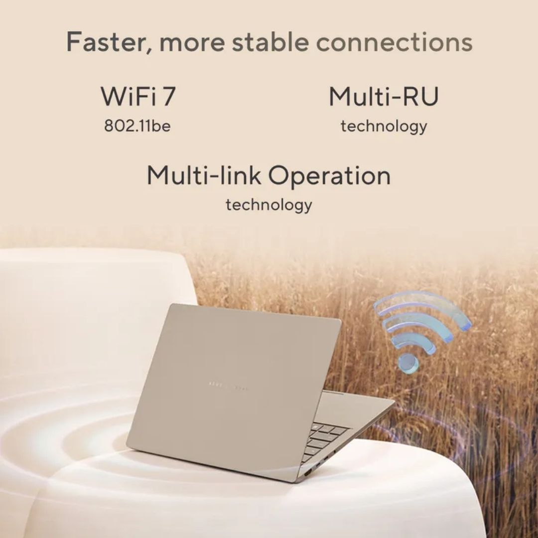 Built with Ceraluminum™ material, the chassis offers premium durability with scratch resistance, shock resistance, and smudge-free usability. The 70Wh battery ensures long-lasting productivity, while the AI-enhanced camera, Dolby Atmos sound, and advanced cooling system deliver a premium user experience. With Wi-Fi 7 connectivity, comprehensive I/O ports, Windows 11 Home, Office Home 2024, and M365 Basic (1 Year), the Zenbook A14 redefines portable AI computing.